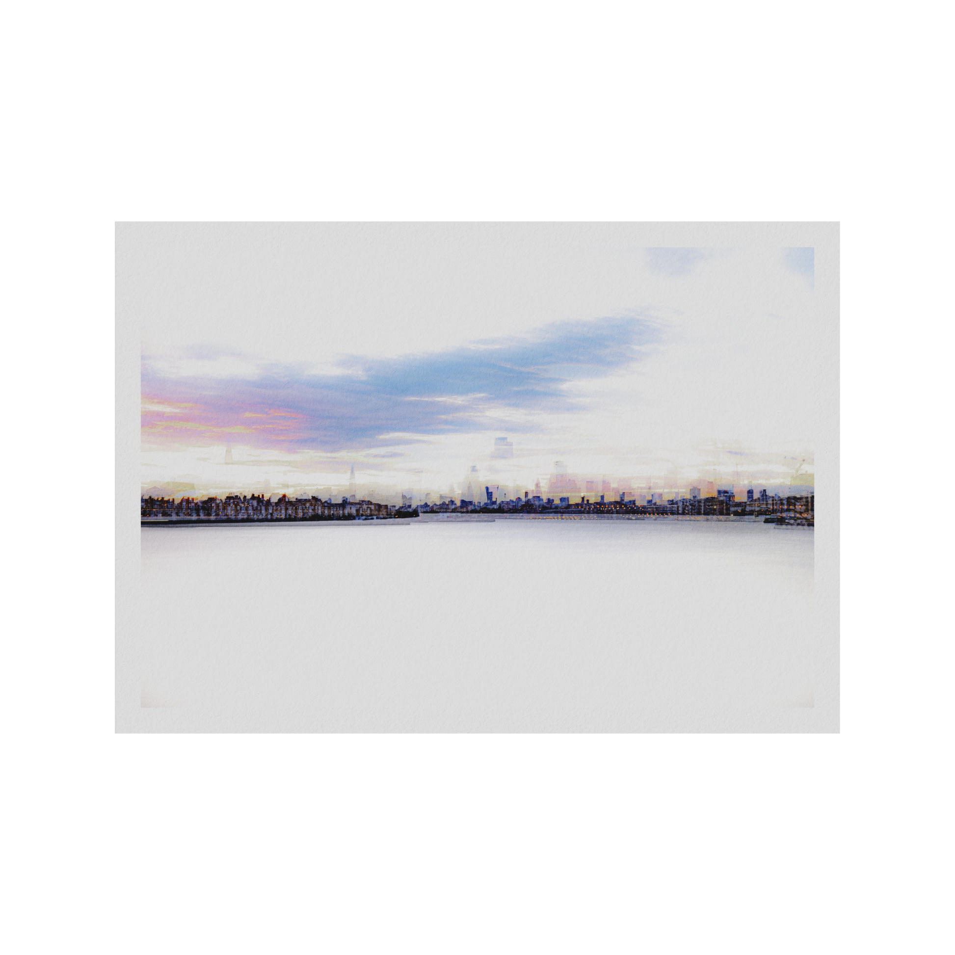 Canary Riverside captures the ever-evolving skyline of Canary Wharf at sunset, where the city’s modern glass towers rise above the historic riverside. Created using multiple exposures, this piece layers time and motion, blending the sharp geometry of London’s financial district with the soft, painterly hues of the evening sky. The...