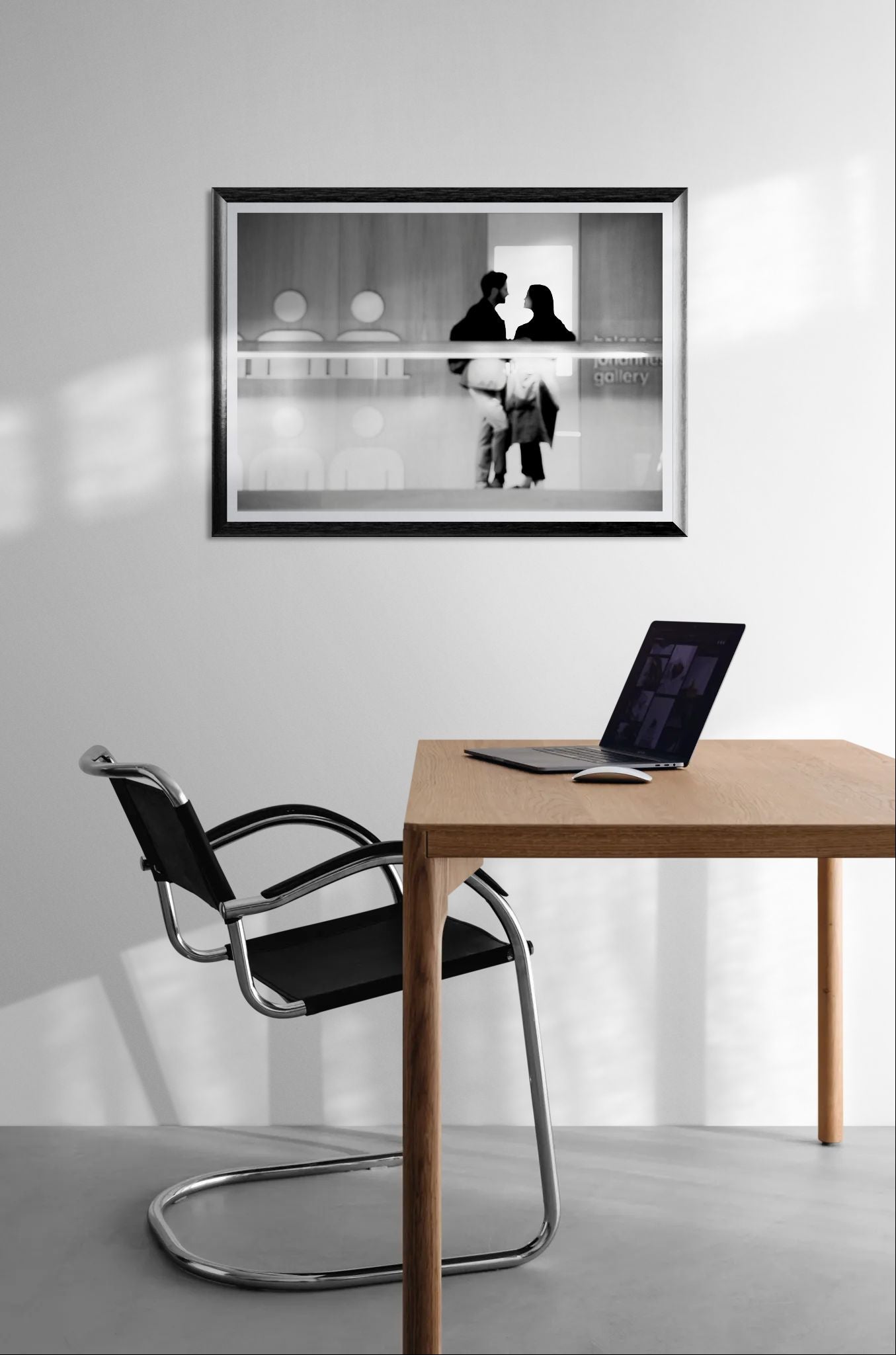 The Affair, Reversed captures a poignant and reflective moment set indoors in Kensington, London, on a quiet evening. This artwork features a couple sharing an intimate moment, their figures intertwined in a dance of connection and emotion. Rendered in an abstract and minimalist style, the image uses multiple exposures to create a sense of movement and depth, highlighting the fluidity and complexity of human relationships.