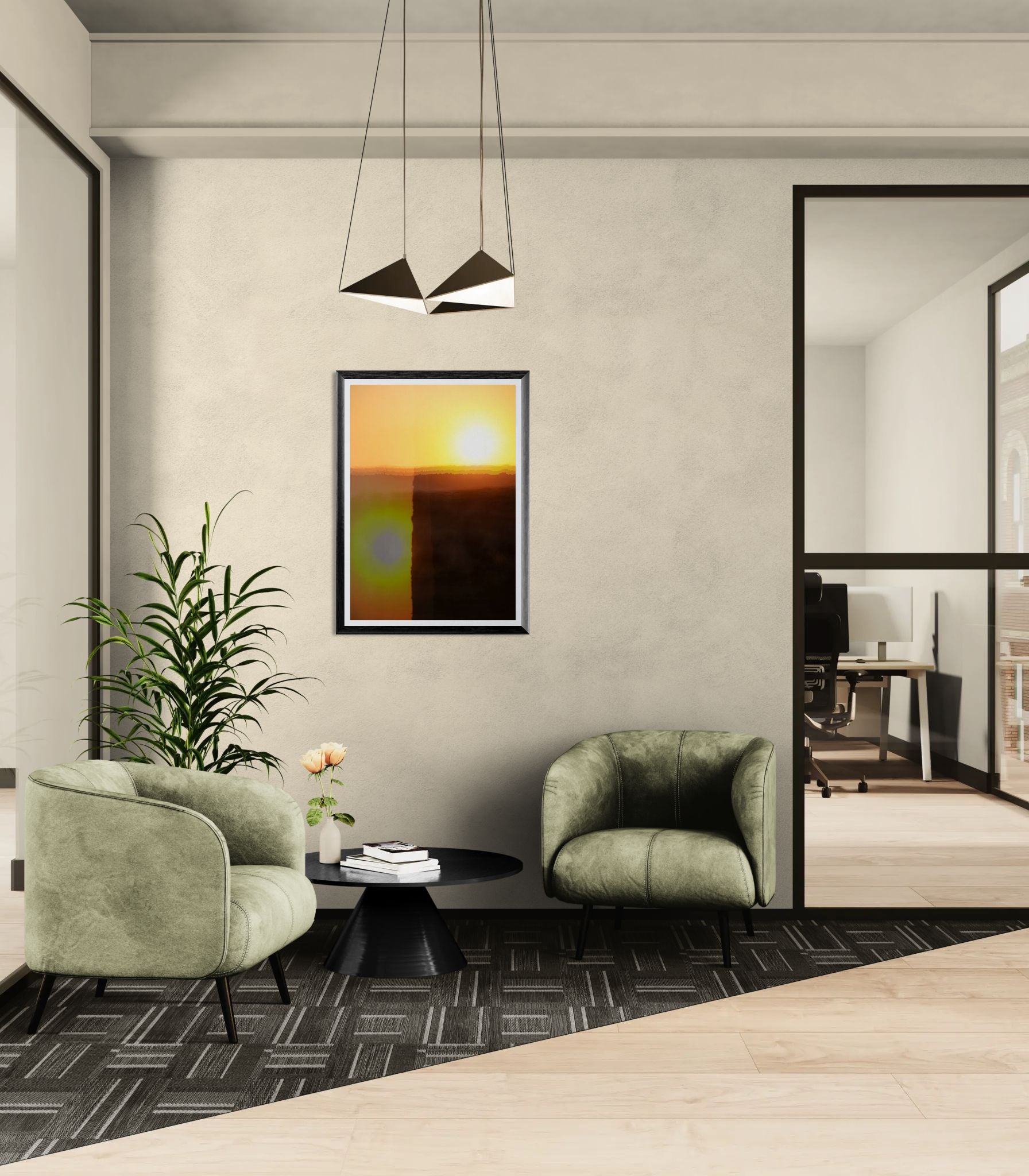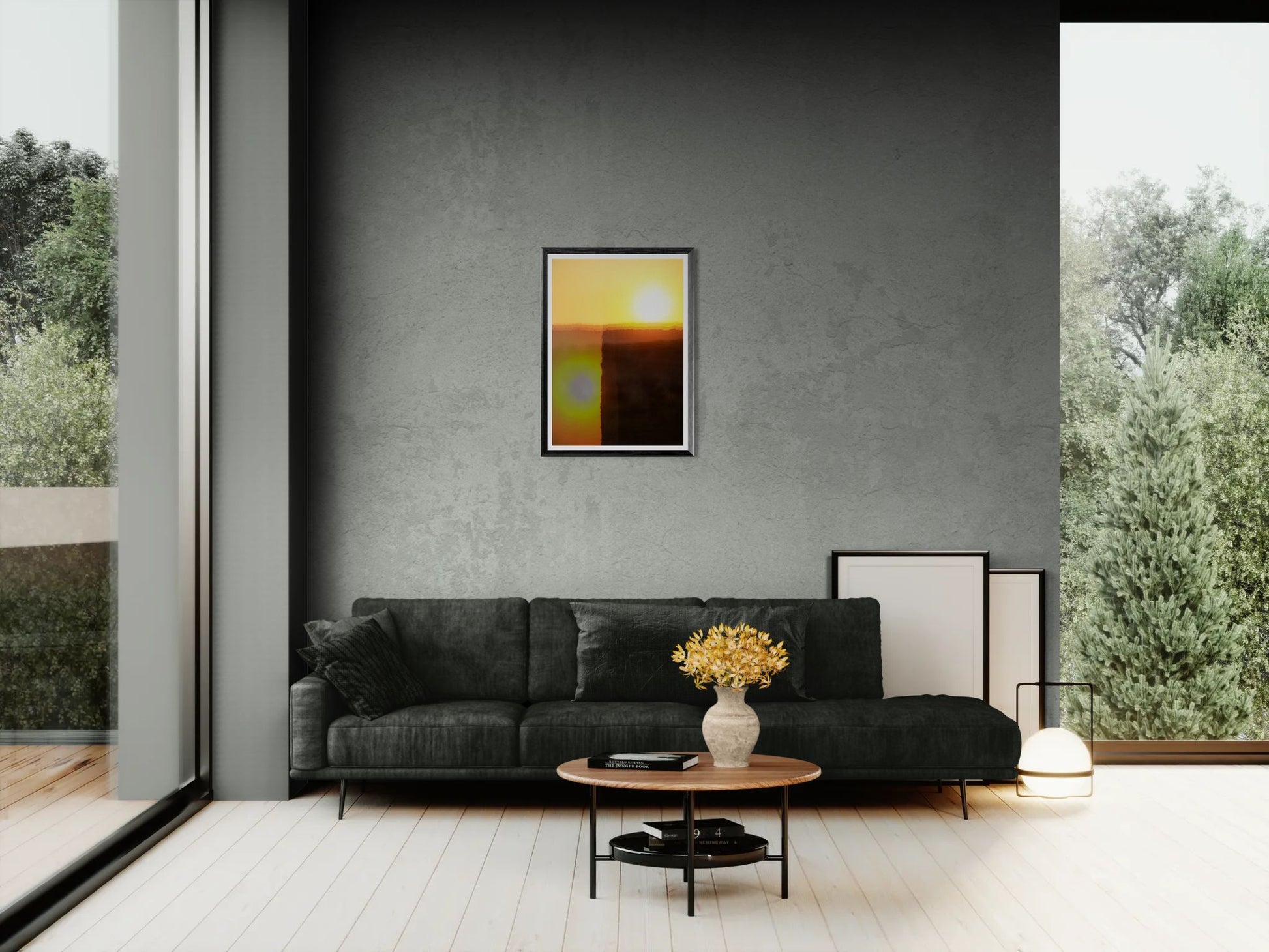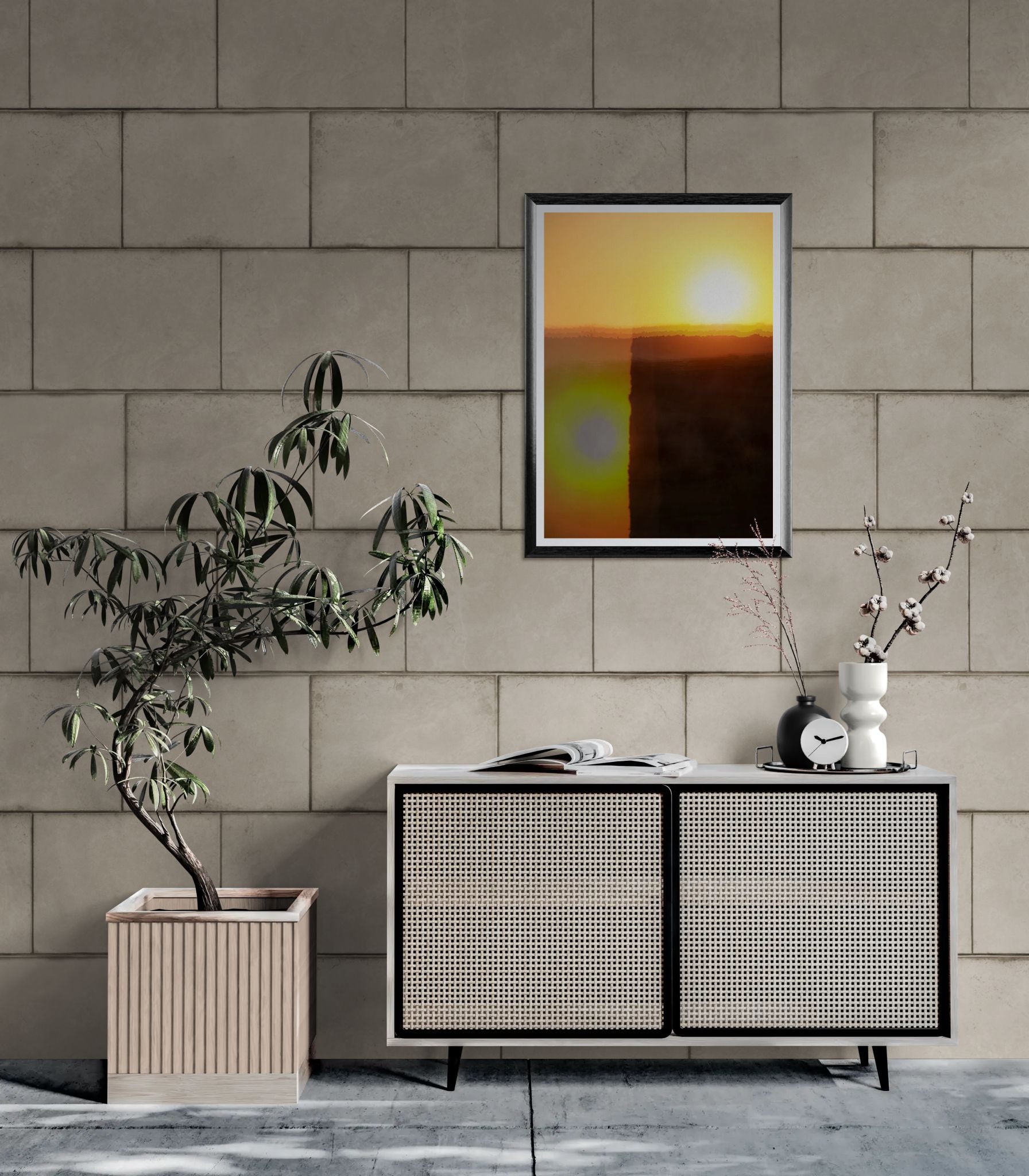 Two Suns in Silves captures the mesmerizing and surreal beauty of a sunset in Silves, Portugal. This artwork, created through a multi-exposure technique, presents the illusion of two suns setting over the historic town, resulting in a captivating and dreamlike visual effect. Rendered in an abstract and minimalist style, the image highlights the vibrant hues and dynamic light of the sunset, creating a unique and enchanting atmosphere.