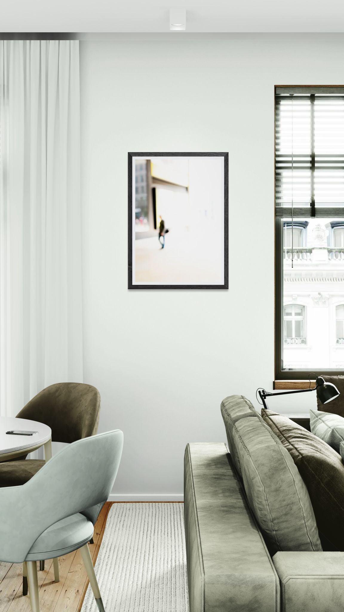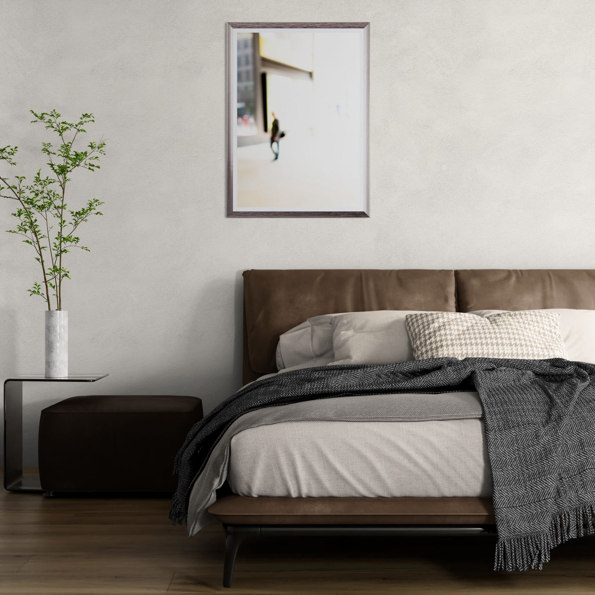 Single Man features the solitary figure of a single man walking through the vibrant streets of Fenchurch. This piece from the Fenchurch collection uses overexposure to highlight the contrast between the individual's focused stride and the bustling urban surroundings. Single Man features the solitary figure of a single man walking through the vibrant streets of Fenchurch. This piece from the Fenchurch collection uses overexposure to highlight the contrast between the individual's focused stride and the bustling urban surroundings.
